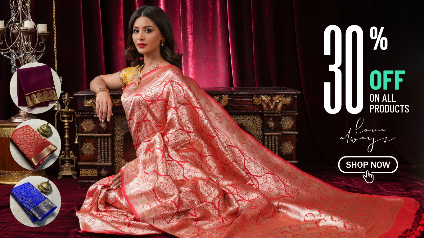 Explore our exquisite collection of premium silk sarees ✯ Free Shipping ✯ Easy returns and exchanges.