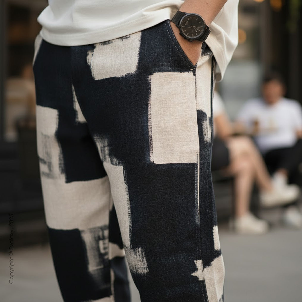 Evalaxy Unisex Brush-Stroke Joggers –Dark Blue & Cream Edition