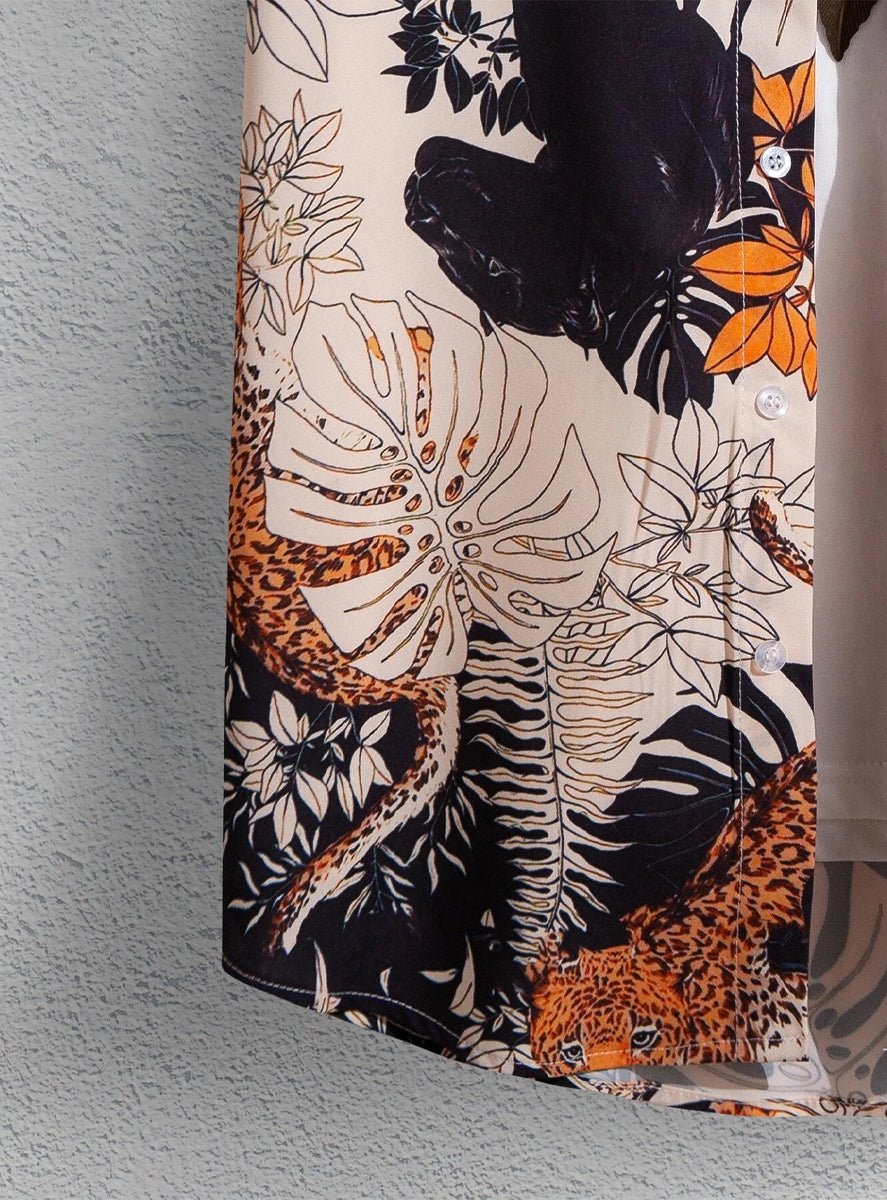 Men Random Black Leopard Print Shirt Without Tee