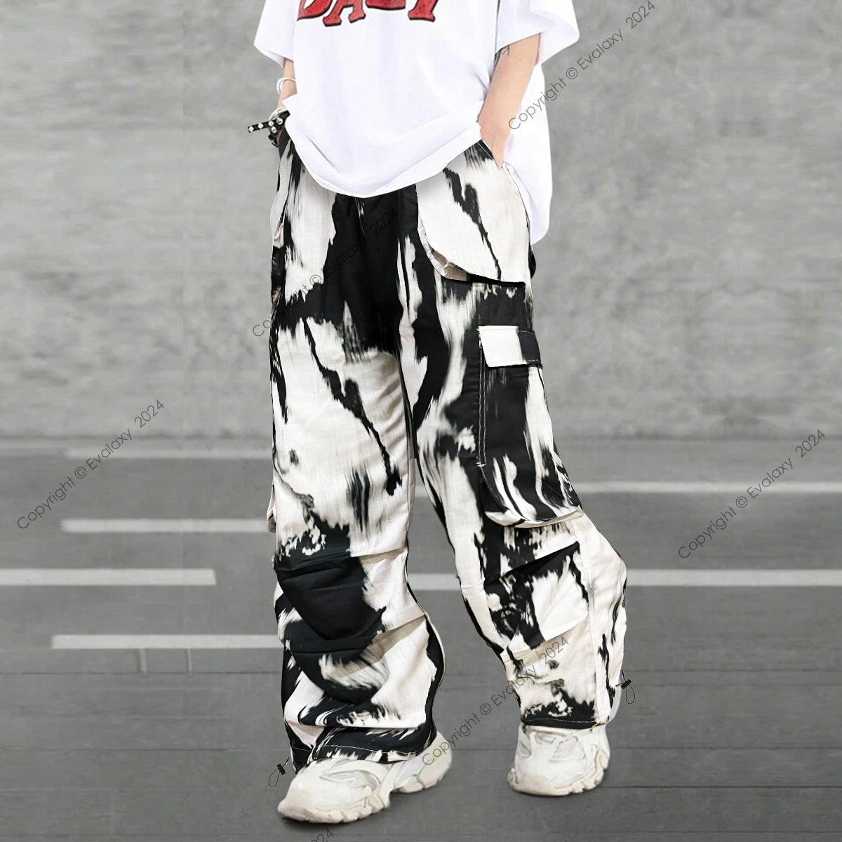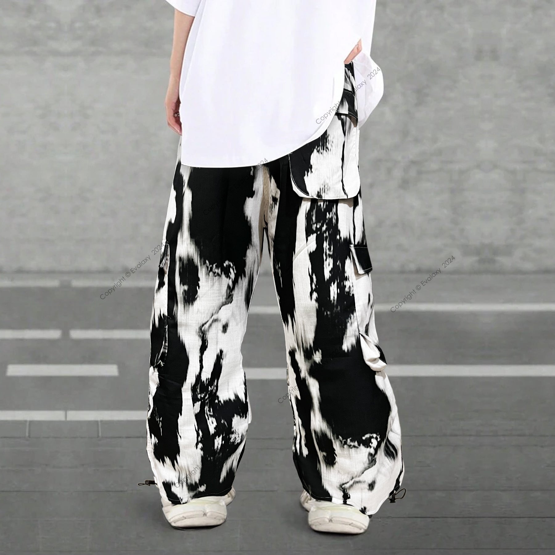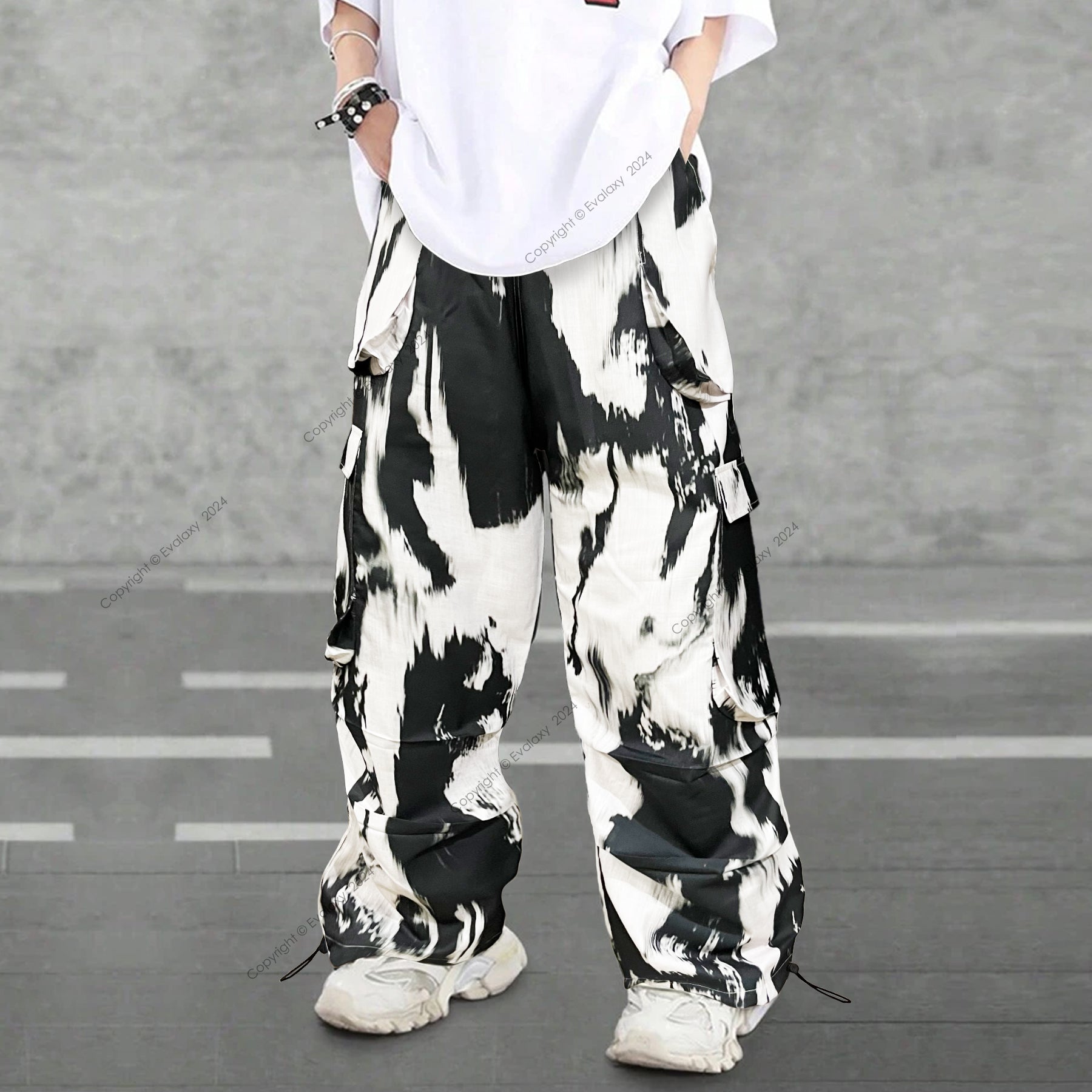 Unisex Splash Black Cargo Pants – Baggy Parachute Style for Men & Women
